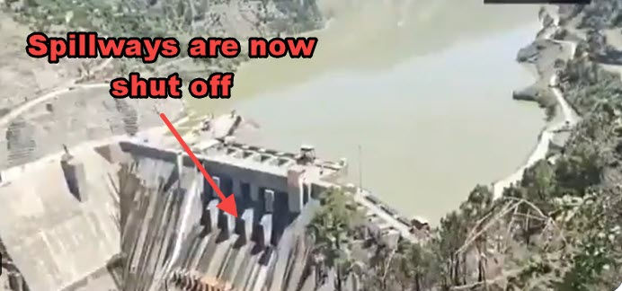 Imagery is now coming in confirming the spillways in the final dam on the Indus River are now SHUT OFF, halting the fresh water from the Indus River from flowing into Pakistan.